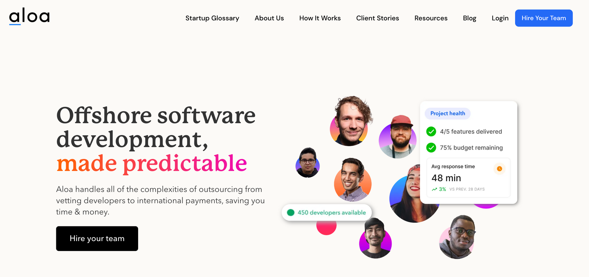 Aloa.co is a hiring platform that offers offshore software development services. The platform handles all the complexities of outsourcing, from vetting developers to international payments, saving businesses time and money. Aloa.co offers a range of cross-platform developers and tools to help businesses manage their remote teams.