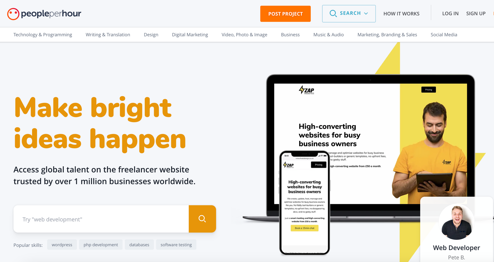 PeoplePerHour is a UK-based freelance marketplace that connects businesses with freelancers from around the world. The platform offers a wide range of services, including web development, mobile app development, and graphic design. PeoplePerHour allows you to post job listings and browse freelancer profiles to find the right developer for your project.