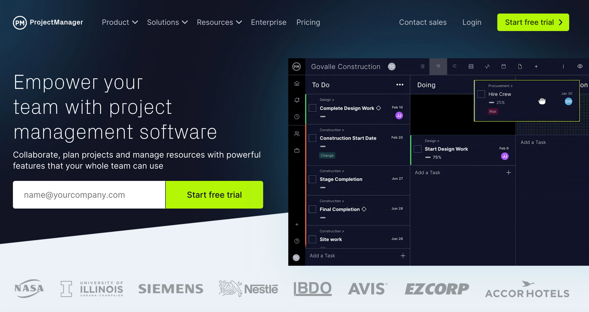 Projectmanager.com is a cloud-based project management software that offers a suite of tools designed to help teams manage their projects effectively. The platform features a real-time dashboard that provides insights into project progress, a Gantt chart for visualizing project timelines, and a task management system that allows users to assign tasks and track their progress.