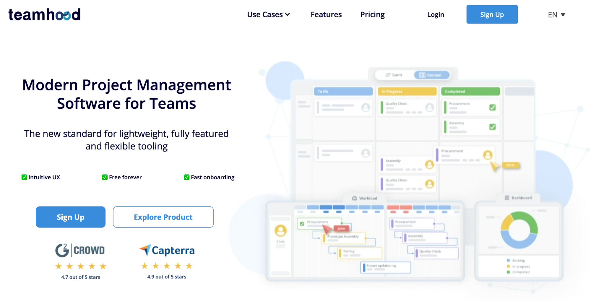 Teamhood.com is a modern project management software that offers a lightweight, fully-featured, and flexible tool for teams. The platform provides an intuitive user experience, free forever plan, and fast onboarding. It is trusted by industry leaders globally and offers centralized work data, workspace reports, and professional Kanban and Gantt charts.