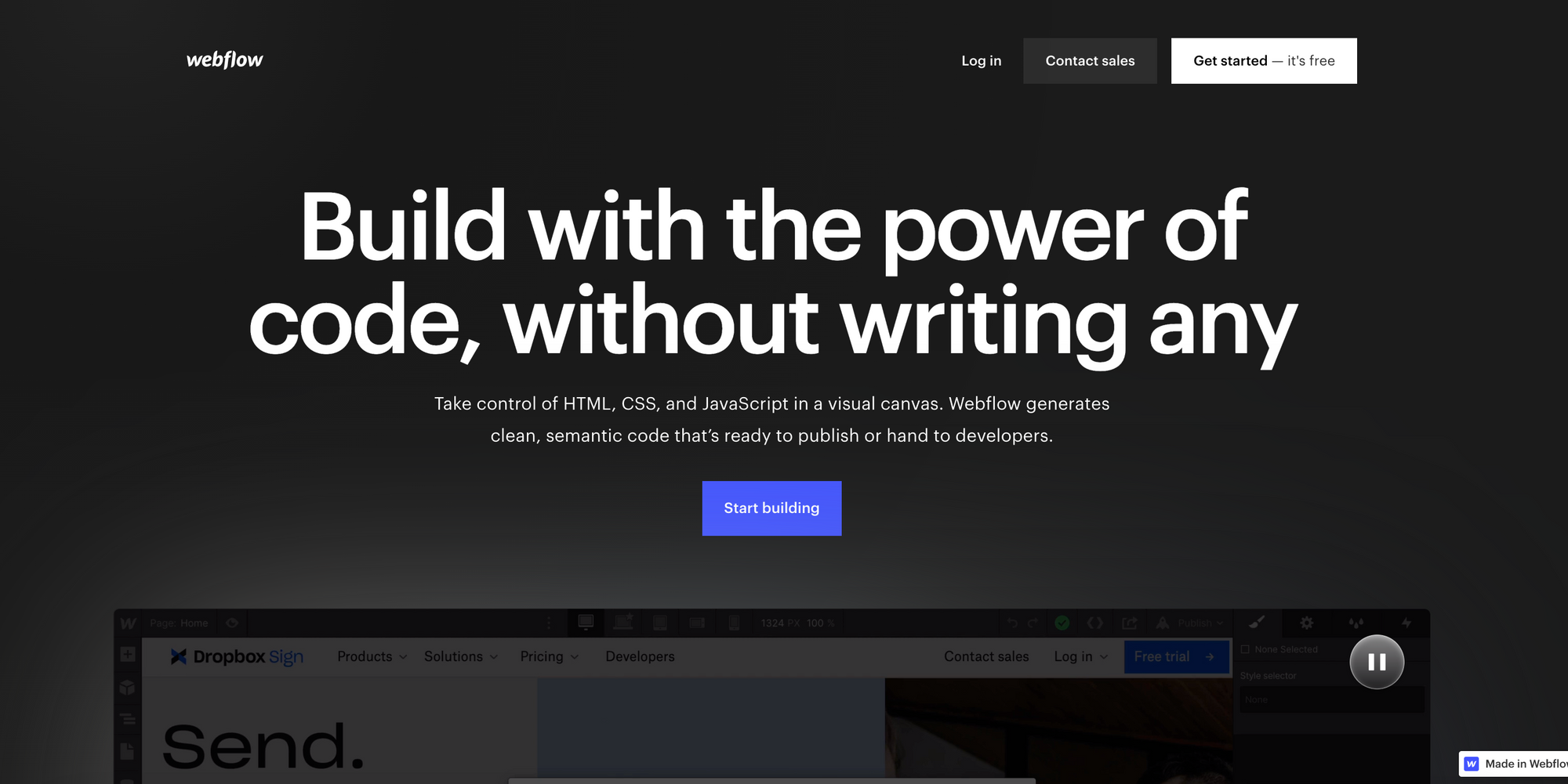- Webflow is a visual website builder that allows users to design and publish responsive websites and landing pages without any coding knowledge.