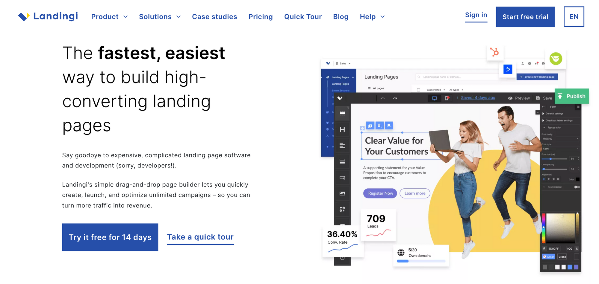 Landingi is a landing page builder that offers a lot of customization options. With Landingi, you can create custom designs from scratch or use one of their pre-built templates as a starting point. They also offer a variety of integrations with other marketing tools, such as email marketing platforms and CRM software.